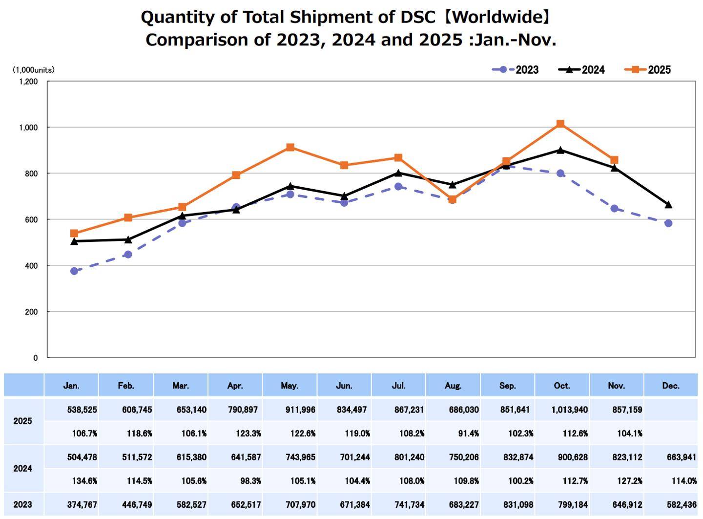 IT之家 2 月 9 日消息,日本相机影像产品工业协会(CIPA)最近公布了 2025 年相机销量数据,显示紧凑型相机产品产量同比增长 30%,成为全年增长最多的销售品类。